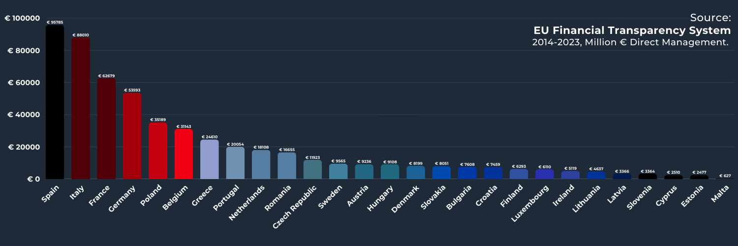 Between 2014 and 2023, the European Union allocated €551 billion in direct management funding across various categories, including member states, public...