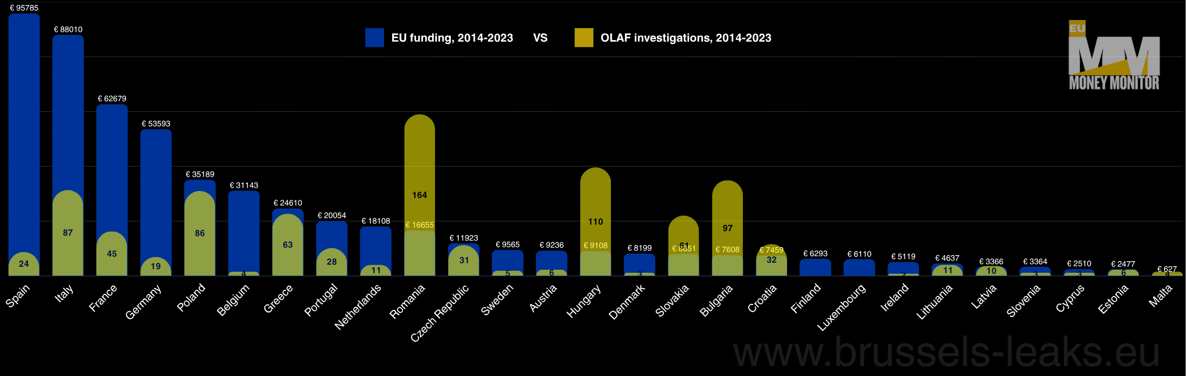 Belgium received €31.2 billion in EU funding. OLAF closed four (4) cases in ten years.
